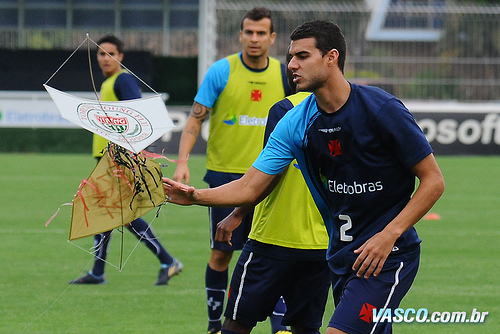 Uma pipa com o emblema da torcida organizada Young Flu, do Fluminense, 'invadiu' o treino da última sexta-feira, 9 de julho, e foi retirada pelo lateral-direito Elder Granja.