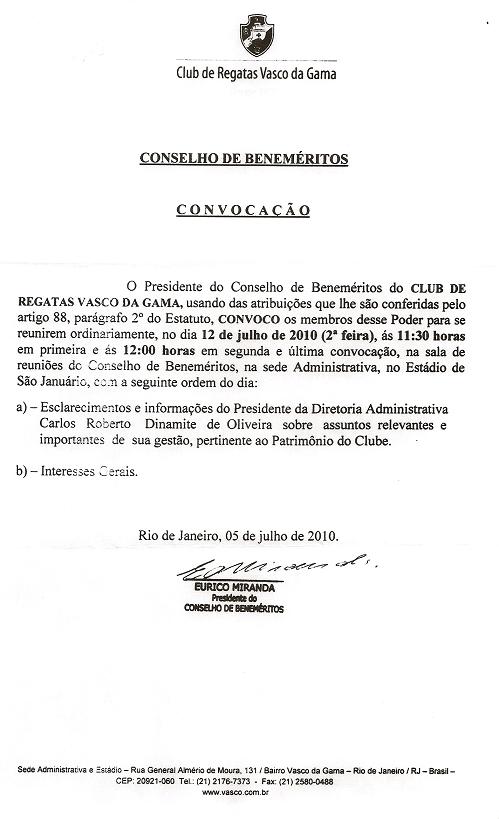 Presidente Roberto Dinamite é convocado pelo Conselho de Beneméritos
