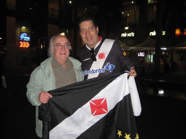 Tostão e Eduardo Nery com a bandeira do Vasco em Durban, África do Sul