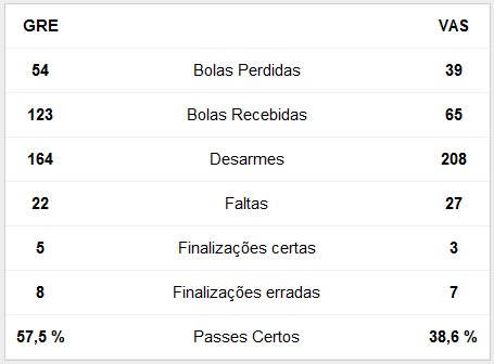 Gols: Nunes aos 6 minutos do primeiro tempo para o Vasco e Jonas aos 9 minutos do primeiro tempo para o Grêmio