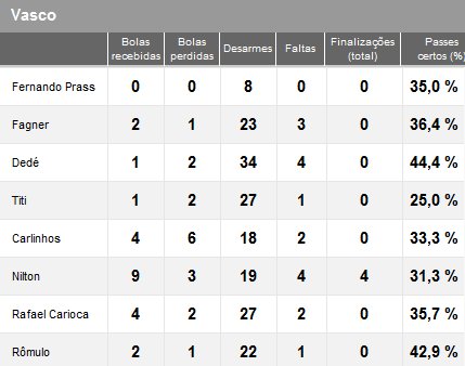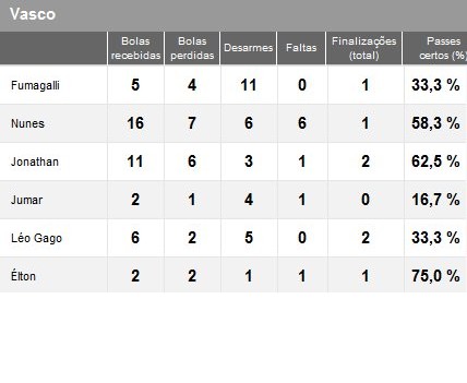 Vasco: Fernando Prass, Fágner (Jumar), Dedé Titi, Carlinhos; Rafael Carioca, Rômulo, Nilton e Fumagalli (Léo Gago); Jonathan (Élton) e Nunes. Técnico: Paulo César Gusmão.