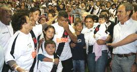 Ao lado de Romário e família, celebração do milésimo gol.