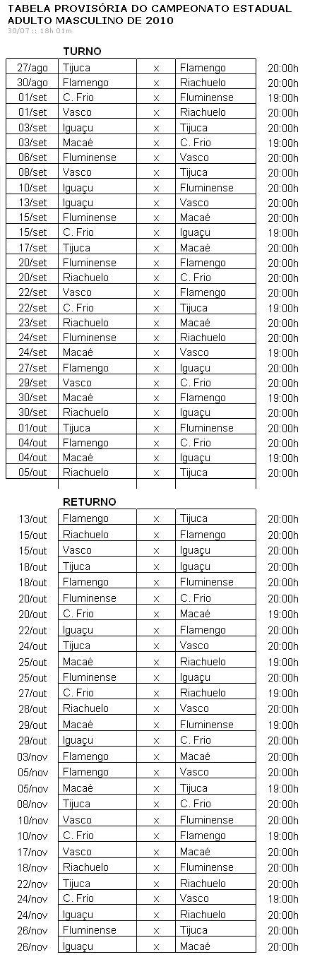 O Vasco confirmou sua participação no Campeonato Estadual Masculino de Basquete 2010. Confira a tabela, divulgada nesta 6ª-feira, 30/07, pela Federação: