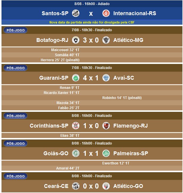 O jogo Santos x Internacional foi adiado, sem data marcada para acontecer, e esses times ficam com um jogo a menos na classificação.