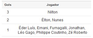 O volante Nilton, como gol marcado diante do Grêmio Prudente, que garantiu a vitória do Vasco na 14ª rodada do Campeonato Brasileiro, se tornou o artilheiro do Vasco no Campeonato.