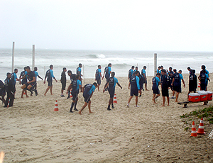 Depois da segunda-feira de folga, os jogadores do Vasco acordaram cedo na manhã desta terça e foram fazer um treino físico na praia da Barra da Tijuca, na Zona Oeste do Rio de Janeiro. Para dificultar ainda mais a vida dos atletas, choveu e fez muito frio durante a atividade comandada pelo preparador Jorge Soter. A equipe se prepara para o aguardado clássico com o Fluminense, domingo, às 18h30m (de Brasília), no Maracanã.