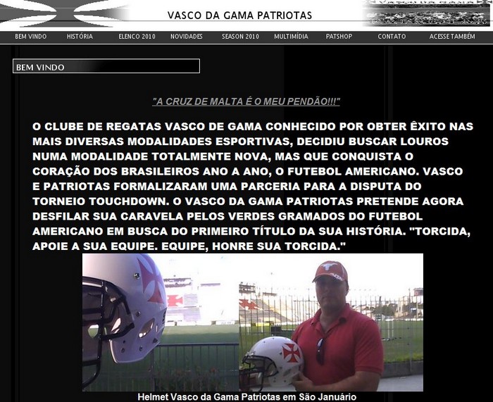 Hoje tornou-se oficial a parceria entre a equipe do Rio de Janeiro Patriotas , que vai disputar o Torneio Touchdown esse ano , e o Vasco da Gama . A partir de agora o Rio de Janeiro conta com mais uma equipe de futebol americano a ter parceria com um Clube de futebol . O Vasco da Gama junta-se agora ao América , Botafogo e Fluminense.