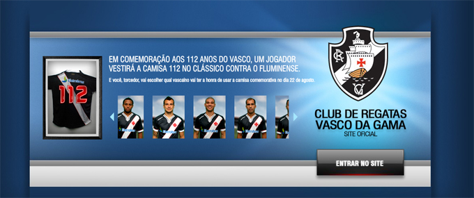O Vasco completa 112 anos no próximo sábado, dia 21 de agosto, e no dia seguinte joga o clássico contra o Fluminense. Assim como fez no ano passado, o departamento de marketing do clube lançou no site oficial do clube uma enquete para o torcedor escolher quem vestirá a camisa alusiva ao aniversário vascaíno na importante partida de domingo pelo Campeonato Brasileiro.