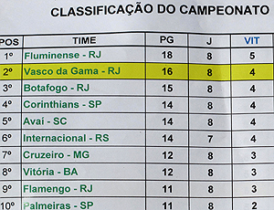 No Vasco, a boa recuperação no Campeonato Brasileiro fez o time colocar a entrada no G-4 como a grande meta do momento. Para motivar ainda mais os jogadores, a comissão técnica colocou no vestiário, além da tabela com a classificação real, uma com a pontuação das equipes após a parada para Copa do Mundo. Nesta, o Gigante da Colina está em segundo lugar com 16 pontos (66,7% de aproveitamento), atrás apenas do líder Fluminense, que somou 18 pontos.