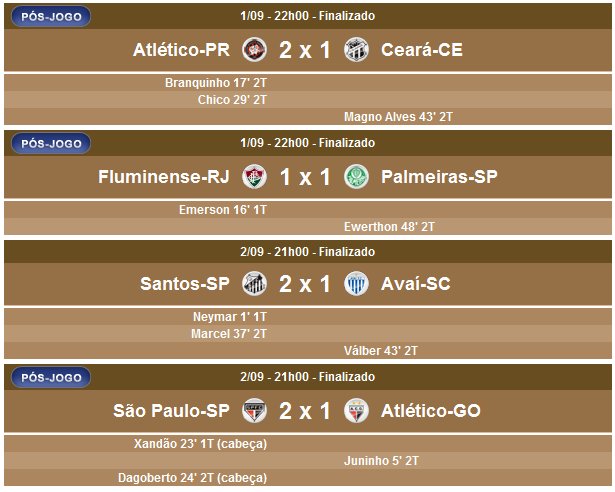 O jogo Santos x Internacional, da 13ª rodada, e o jogo Vasco x Corinthians, da 18ª rodada, foram adiados para 13/10. Assim, esses 4 times ficam com um jogo a menos na classificação.