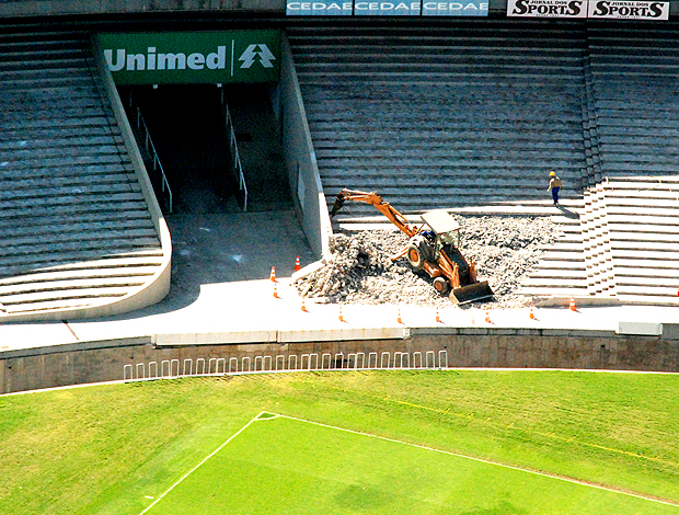 O Maracanã amanheceu nesta sexta-feira com mais um etapa das obras que visam à Copa do Mundo de 2014. Uma escavadeira começou a demolir parte do anel inferior. No domingo, Flamengo e Santos disputam a última partida no estádio antes do fechamento do estádio para o término dos trabalhos.