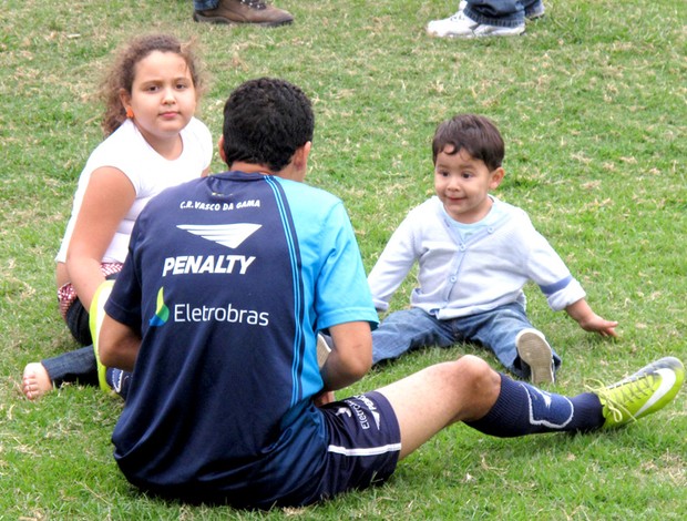 A véspera de feriado foi de boa presença de torcedores e familiares de jogadores em São Januário. Quem aproveitou bem o dia foi Davi, filho do atacante Éder Luis. O garoto correu por todos os lados e jogou bola com o pai no gramado antes de o treino começar.