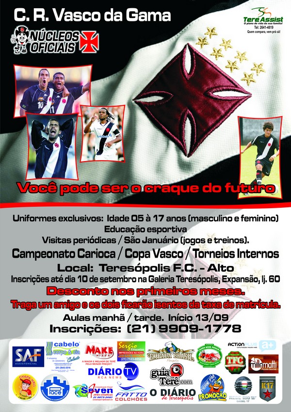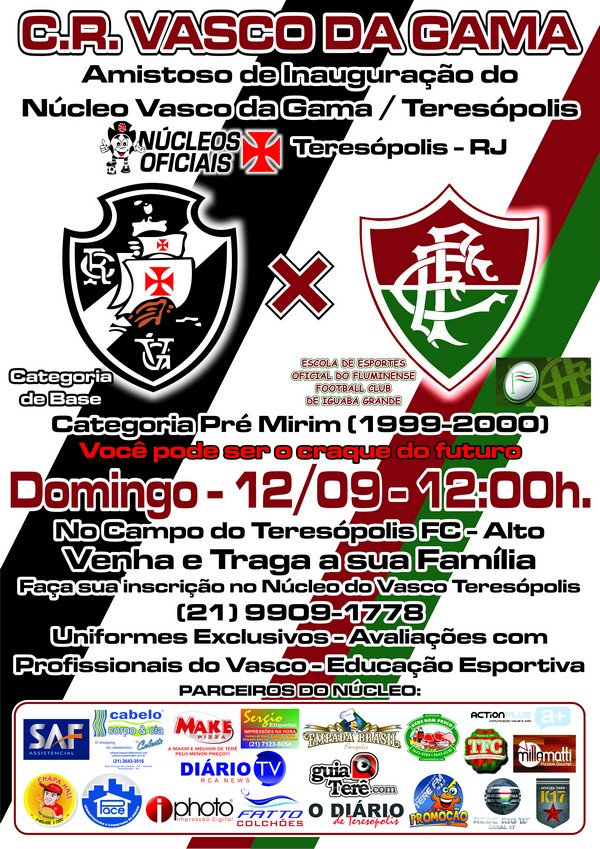 No próximo domingo (12/09) o Vasco estará inaugurando um Núcleo oficial em Teresópolis (RJ), que vai atender a mais de 350 crianças, no Teresópolis Futebol Clube, onde serão ministradas as aulas. A inauguração será com um amistoso entre Vasco da Gama (categoria Pré-Mirim) e Educação Esportiva do Fluminense Iguaba Grande (categoria Pré-Mirim).