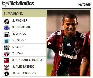 Fágner é o 2º entre os laterais-direitos, atrás de Mariano do Fluminense, à frente de Jonathan, do Cruzeiro, e de Danilo, do Santos. Já Fernando Prass é o 3º entre os goleiros, atrás de Fábio, do Cruzeiro, e Rogério Ceni, do São Paulo, e à frente de Jefferson, do Botafogo.
