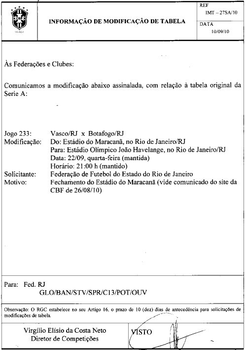Fonte: NETVASCO (texto), CBF (imagem da tabela, ofício)