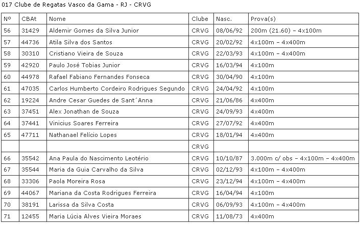 Fonte: NETVASCO (texto), Site da CBAt (lista de atletas)