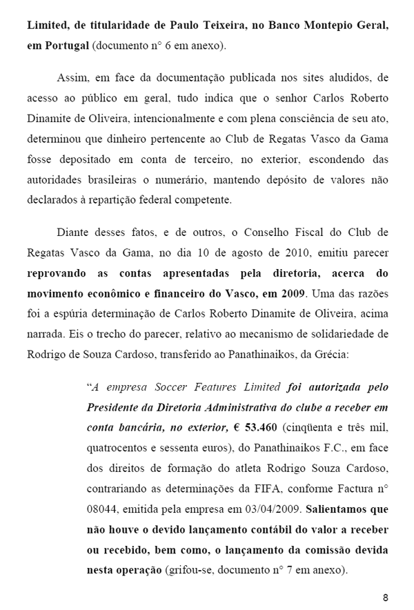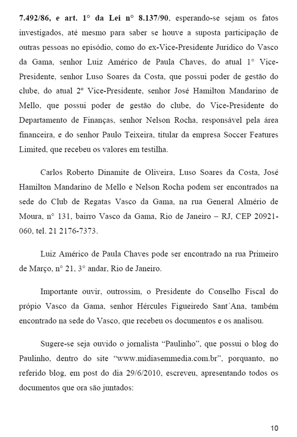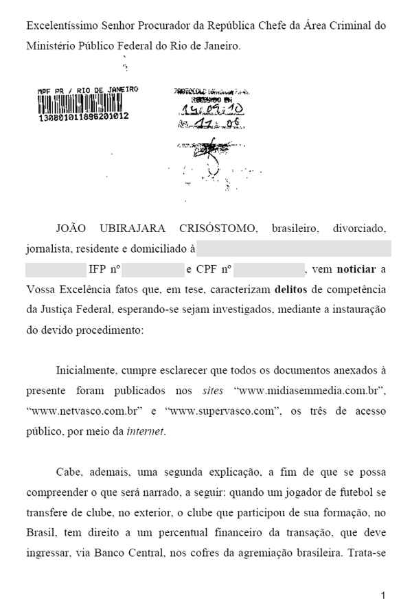 Um sócio vascaíno fez hoje uma denúncia ao Ministério Público.