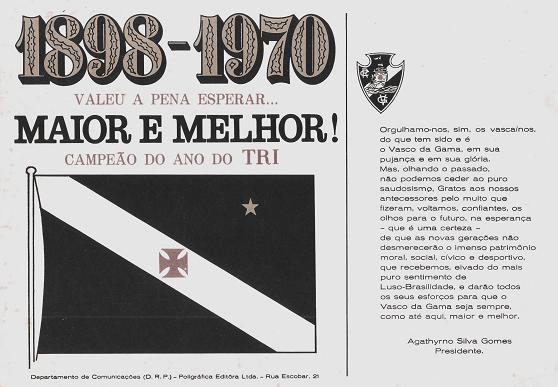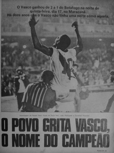 Mas eu fiquei com a sensação de ter dado um "cala-boca" nos meus colegas de escola não-vascaínos quando o Vasco venceu o Flamengo no turno. Naquela época a Loteria Esportiva era uma novidade, tinha começado logo antes da Copa, e na minha turma da escola a gente fazia um concurso interno, com cada um apostando um trocado do dinheiro da merenda e aquele que fizesse mais pontos ganhava a bolada. Naquela semana eu fui o ganhador por ter sido o único que tinha cravado a vitória do Vasco sobre o Flamengo. Foi o pontinho que fez a diferença.