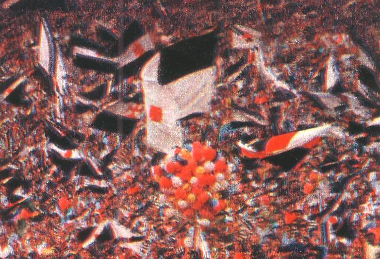 Estive presente em mais da metade dos jogos, inclusive um contra a Portuguesa na Ilha e um contra o Olaria que foi disputado em Teixeira de Castro, estádio do Bonsucesso, e não na rua Bariri como seria de se esperar. Nesses o meu pai não foi. Fui com amigos, de ônibus. O Vasco disputou apenas dois jogos em São Januário, um na estreia contra o Bonsucesso e outro numa quarta à noite, se não me engano contra o São Cristóvão, e não fomos a nenhum dos dois. Quase todos os outros jogos foram no Maracanã, onde íamos a pé. Os clássicos, fomos a todos menos um, justamente o do gol da poça d’água, contra o Flamengo, não que o temporal nos desencorajasse, mas por motivo de saúde, uma pequena cirurgia para remover uma inflamação no dedo indicador, que me impediu de comparecer às duas primeiras rodadas do returno, o primeiro jogo contra o Olaria no Maracanã o segundo essa vitória sobre o Flamengo. Vários jogos da campanha foram muito marcantes. Até mesmo a derrota para o América no turno, por causa do gol fantástico marcado pelo Silva, partindo de antes da linha de meio de campo e driblando mais de meio time do América, sendo a seguir aplaudido pela torcida do Vasco toda de pé, uma ovação como se ele fosse um virtuose que tivesse executado um concerto de música clássica. O Vasco acabou perdendo por 3 a 1, mas aquele golaço ficou na memória. A primeira vez na minha vida que eu compareci a um estádio que não fosse o Maracanã ou São Januário foi a vitória sobre o Olaria em Teixeira de Castro, no turno, que foi suadíssima, tanto no sentido figurado como no sentido literal, pois a arquibancada estava apinhada, numa tarde de sábado, e fazia um calor dos diabos. Foi um sofrimento, o Olaria armou uma retranca terrível e o Vasco não jogava bem, mas no segundo tempo veio o golzinho salvador do Alcir. Me lembro de um empate terrível contra o Campo Grande, onde eu fui de geral na companhia de amigos e ficamos os 90 minutos atrás do gol defendido pelo goleiro do Campo Grande, chamado Sanchez, que fez defesas impossíveis e segurou o 0 a 0. Já na reta final, os jogos contra Madureira e Campo Grande foram preliminares de um Fla-Flu e Flamengo x América respectivamente, e claro que as torcidas adversárias torciam contra, para o Vasco perder a liderança que tinha naquela altura. Lembro-me de permanecermos naquele Fla-Flu para torcer pelo Fla, já que o Flu era nosso concorrente direto e o Fla já estava fora do páreo, mas não adiantou. Mas foi uma boa lição: torcer para eles não compensa nunca. A vitória contra o América na antepenúltima rodada foi para mim tão emocionante quanto a vitória sobre o Botafogo na rodada seguinte, que garantiu o título antecipado. Essa foi emocionante pela iminência do título e pela euforia depois do jogo. Mas contra o América, que ainda lutava por uma pequena chance de chegar ao título e havia sido o único adversário a derrotar o Vasco até aquela altura, havia a sensação de que era o jogo chave, que colocaria o Vasco com a mão na taça. E o Vasco jogou muito, teve a sua melhor atuação em todo o campeonato, em que pese um gol contra de placa do Renê – se é que um gol contra pode ser de placa -, que foi querer atrasar do meio do campo para o Andrada, que estava na linha da grande área, e acabou encobrindo o espantado goleiro, que ainda deu inutilmente uma corrida de volta para o gol . O murmúrio de desespero nas arquibancadas foi indescritível. E finalmente, a festa da entrega das faixas no último jogo foi linda, com o Maracanã tomado pela torcida do Vasco, que ia até quase atrás do gol do lado da torcida do Flu. Havia feixes de bolas de gás em toda parte, colorindo o estádio, e foram soltas simultaneamente quando o time entrou em campo sob a ovação da torcida.