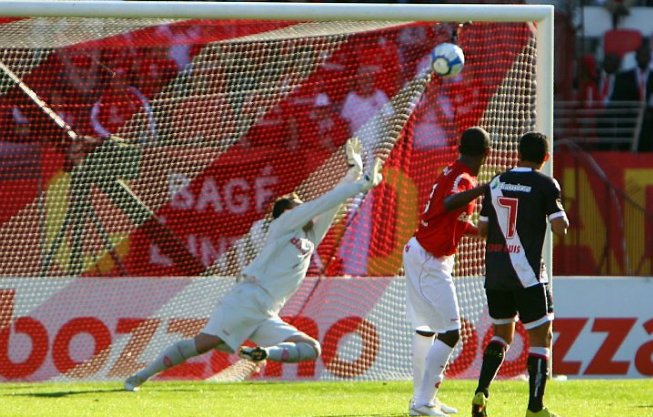 Renan, substituído por Abbondanzieri, saiu de campo tonto no final do primeiro tempo. Foi por causa de uma pancada na cabeça, mas bem que poderia ter sido em função de excesso de trabalho. O goleiro colorado teve que voar de um lado a outro para evitar os gols do Vasco. Defendeu pancadas de Rafael Coelho, de Felipe Bastos, de Fagner. E fez defesa sobrenatural em uma martelada de Nilton (veja no vídeo acima). Foi em cobrança de falta da entrada da área. A bola passou feito um foguete pela barreira e foi na direção do gol. Renan, ao mesmo tempo, defendeu a meta do Inter e a própria vida. Se aquela bola batesse na cabeça dele, o goleirão estaria voando até agora...