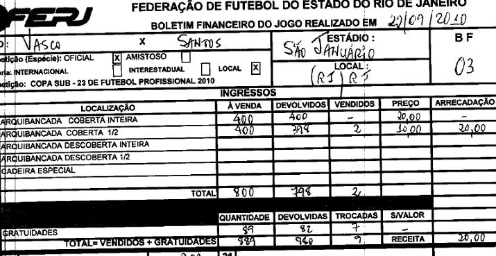 Fonte: NETVASCO (texto), Site da FFERJ (imagem do borderô)