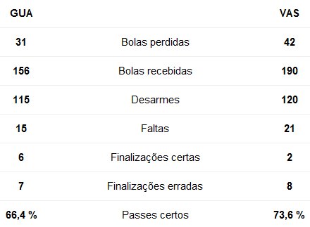 ![]() Estatísticas de Guarani 1x0 Vasco | ![]() Estatísticas de Guarani 1x0 Vasco | ![]() Estatísticas de Guarani 1x0 Vasco |