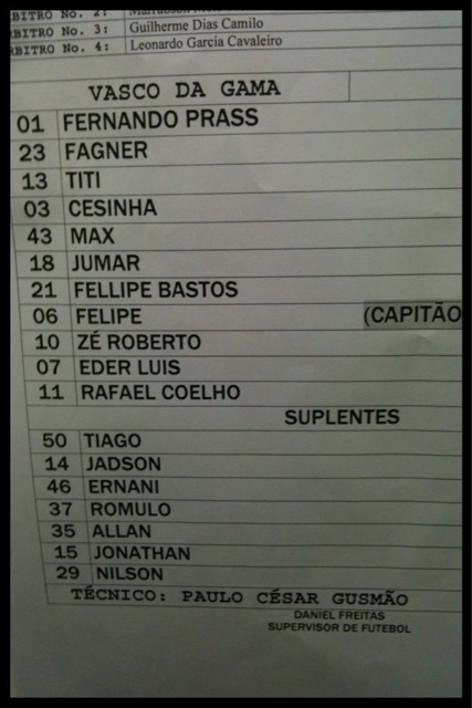 Confira abaixo a escalação do Vasco para a partida contra o Santos, publicada no twitter do assessor de imprensa do Vasco (@viniciuscrvg):