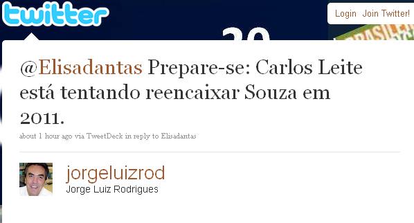 Fonte: Twitter do jornalista Jorge Luiz Rodrigues