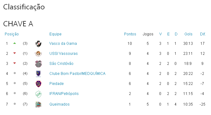 Com esse resultado o Vasco assume a liderança da Chave A com 10 pontos. Em segundo lugar temos USS/Vassouras com 9 pontos, seguido de São Cristóvão com 8 pontos. Na próxima rodada o Vasco folga ficando assim, com o mesmo número de jogos de seus principais rivais. No dia 21 de outubro o clube da colina tem sua última partida da primeira fase em casa, contra o Ifran Petrópolis