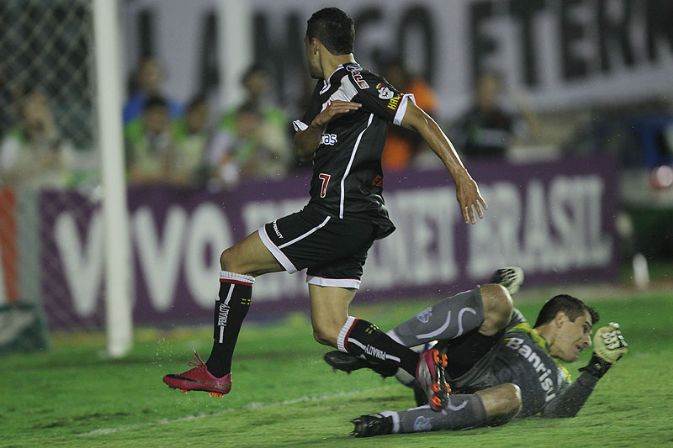 O Vasco parecia depender da inspiração de Eder Luis. E o atacante, em boa fase, resolveu aparecer. Primeiro, fez um giro em cima de Rafael Marques e soltou a bomba de fora da área. A bola explodiu no travessão. No minuto seguinte, Zé Roberto deu um ótimo passe para o jogador, que apareceu livre à frente do goleiro Marcelo Grohe. Um toque sutil foi o suficiente para enganar o camisa 1 e marcar o primeiro gol cruzmaltino. Vasco 1 a 0. Foi o sétimo gol de Eder Luis no Campeonato Brasileiro.