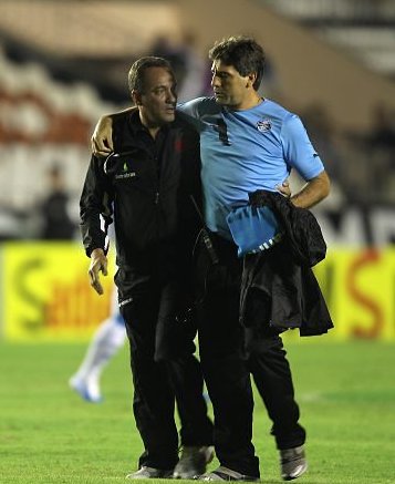 A poucos metros do lance, o técnico Paulo César Gusmão ficou muito irritado com o erro da defesa vascaína. Resolveu tirar Rafael Carioca e colocar Rômulo para reforçar a marcação. O Grêmio foi para o tudo ou nada. E levava muito perigo nos cruzamentos para a área. Em um deles, Lucio conseguiu cabecear bem no canto esquerdo. Fernando Prass salvou o Vasco. E no abafa, o time gaúcho chegou ao empate. Aos 43 minutos, a bola parou nos pés de Gabriel após ótima tabela pela direita, que chutou forte no canto esquerdo. Um belo gol. Tudo igual em São Januário: 3 a 3.