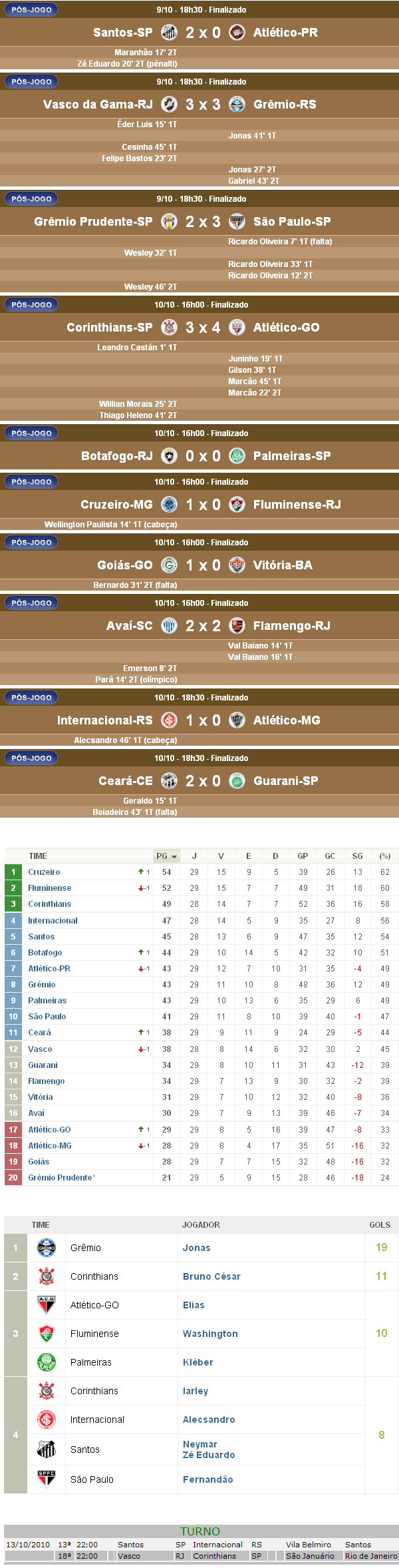 Fonte: NETVASCO (texto), Futebol Interior (resultados, autores dos gols), UOL (classificação, artilharia), Site da CBF (próximos jogos)