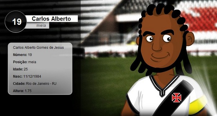 Em comemoração ao Dia das Crianças, o site oficial do Vasco trouxe uma novidade: os jogadores são apresentados em versão caricatura no elenco.