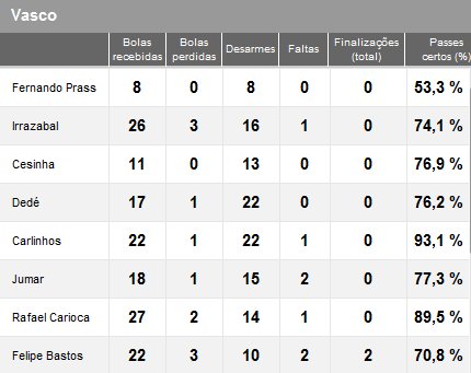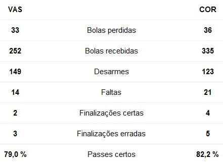 ![]() Estatísticas de Vasco 2x0 Corinthians | ![]() Estatísticas de Vasco 2x0 Corinthians | ![]() Estatísticas de Vasco 2x0 Corinthians |