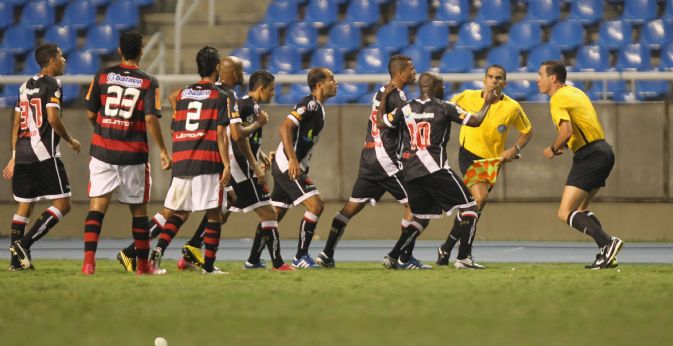 O sinal ficou amarelo para o Vasco, que havia perdido o controle da partida. Justamente quando estava sendo pressionado, aproveitou-se de nova bobeira na saída de jogo do meio-campo do Flamengo e, depois de trapalhada da zaga, chegou ao gol.