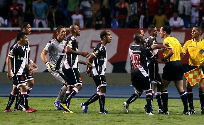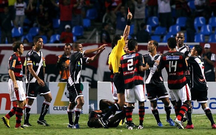 Aos 19 minutos, num jogo até então sem cartões amarelos, um lance que gerou discussão: Willians e Dedé entraram duro numa dividida. Só que o zagueiro do Vasco entrou de sola e acertou o tornozelo do camisa 8. O árbitro Gutemberg de Paula Fonseca aplicou-lhe o cartão vermelho. O time do Vasco, além do técnico PC Gusmão, reclamou muito da marcação.
