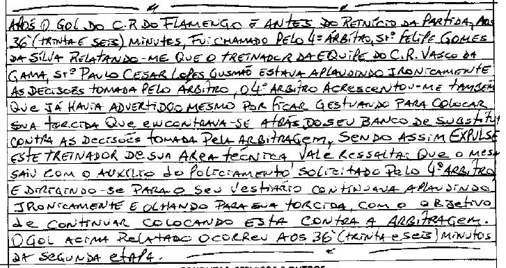 Súmula de Vasco 1 x 1 Flamengo em 24/10/2010 -