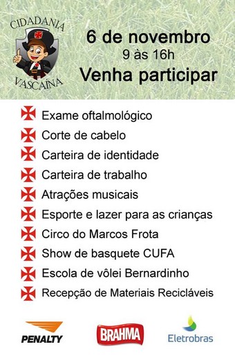 São mais de 40 serviços sociais , apresentação de todos os esportes olímpicos do Vasco com direito a inscrição nas escolinhas com 3 meses de participação, sem custo de inscrição e mensalidade.