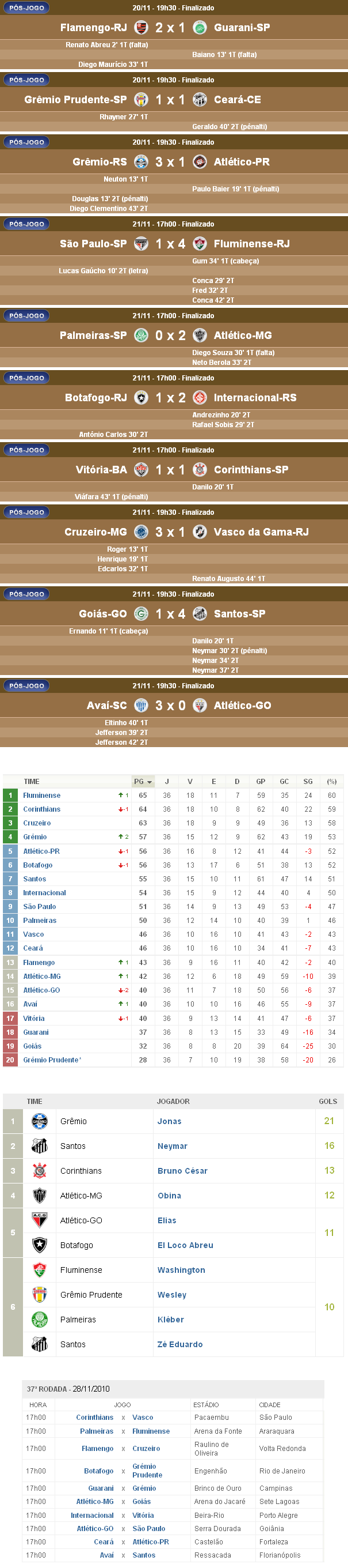 Terminada a 36ª e antepenúltima rodada do Campeonato Brasileiro (a 17ª do returno), o Vasco, que perdeu para o Cruzeiro por 3 a 1, manteve-se na 11ª colocação na tabela.