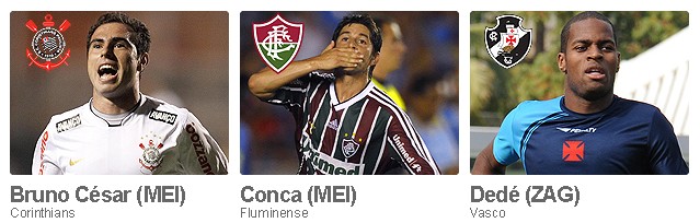 Melhor meia pela esquerda: Bruno César (Corinthians), Conca (Fluminense) e Douglas (Grêmio)
