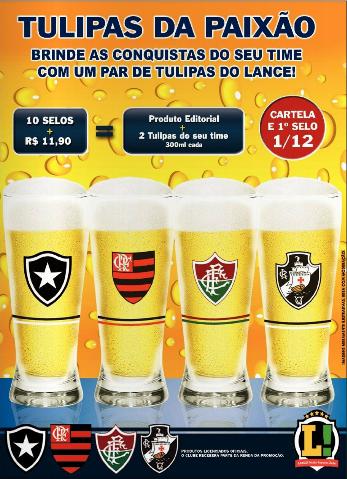 Entra no ar nesta quarta-feira (24) a campanha da nova ação promocional do Diário Lance! no Rio de Janeiro. Baseada na mecânica da troca de selos, a promoção “Tulipas da Paixão” dará pares de tulipas de chopp com o escudo do Botafogo, Flamengo, Fluminense ou Vasco aos seus leitores.