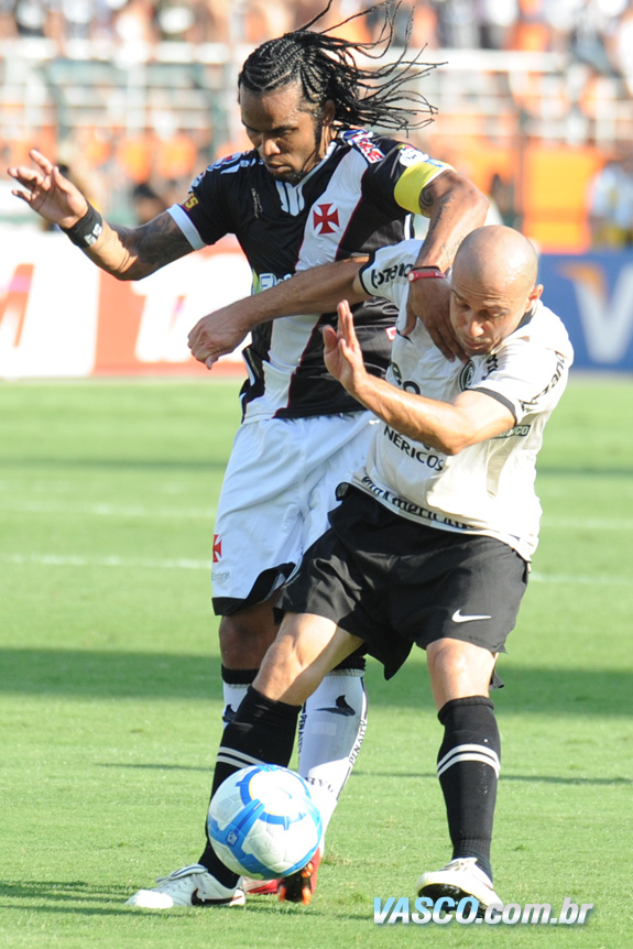 Aos poucos, porém, a empolgação corintiana foi diminuindo. Com apenas Carlos Alberto sem obrigação de marcar, o Vasco congestionou seu campo defensivo, não permitindo que o Timão jogasse. Quando a bola se aproximou da área, faltou Ronaldo. Dentinho e Jorge Henrique pouco fizeram no meio dos grandalhões da zaga adversária. Para piorar, o Fluminense chegava ao empate em Barueri.