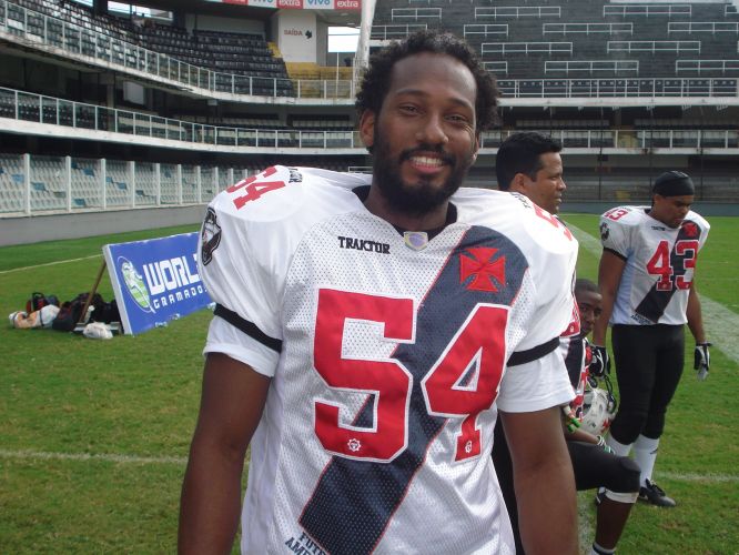 “Jogo desde 2006 no Rio de Janeiro, só na areia. Como não temos muitos campos de grama, juntamos tudo no Vasco. Fui chamado para o time no início do ano”, disse o participante da sétima edição do reality show televisivo e linebacker da equipe vascaína.