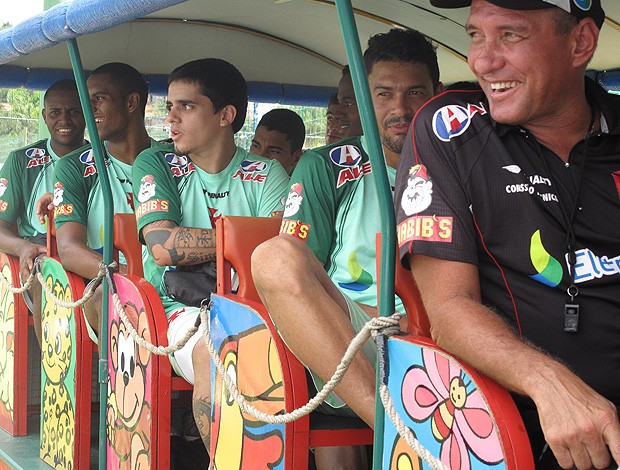 Depois do primeiro treino físico da pré-temporada, nesta quarta-feira, em Atibaia, alguns jogadores pensaram em relaxar na piscina antes do almoço. Mas quando um trenzinho passou, o cansaço falou mais alto e todos, inclusive integrantes da comissão técnica, pegaram uma carona.