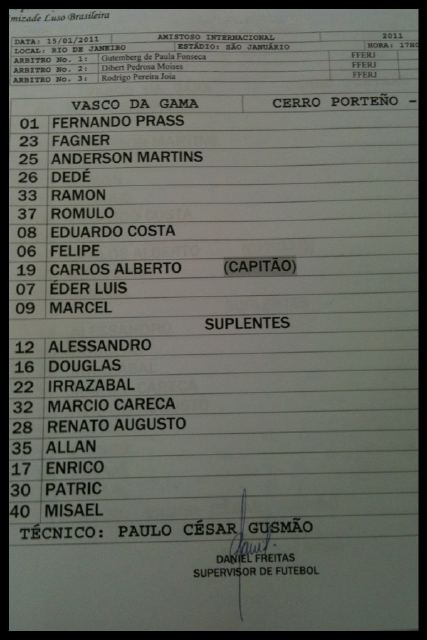Confira a escalação oficial do Vasco para o jogo contra o Cerro Porteño