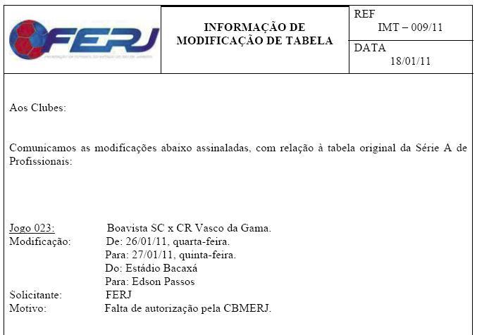Fonte: NETVASCO (texto), Site da FFERJ (ofício)