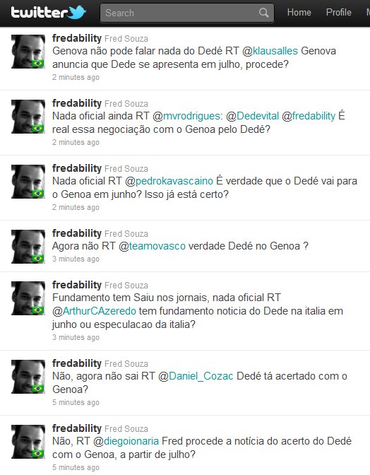 Fonte: Twitter de Fred Souza, empresário do zagueiro Dedé