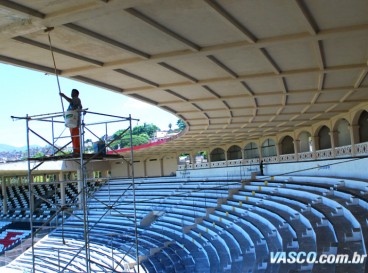 - É a continuação do trabalho que estamos realizando aqui no clube. Não fazemos só a pintura, estamos colocando uma manta para evitar umidade, goteiras, e qualquer tipo de perigo para o nosso torcedor. A segurança é nossa grande preocupação, para não acontecer o que ocorreu em outros estádios brasileiros – disse o dirigente com exclusividade ao site oficial.