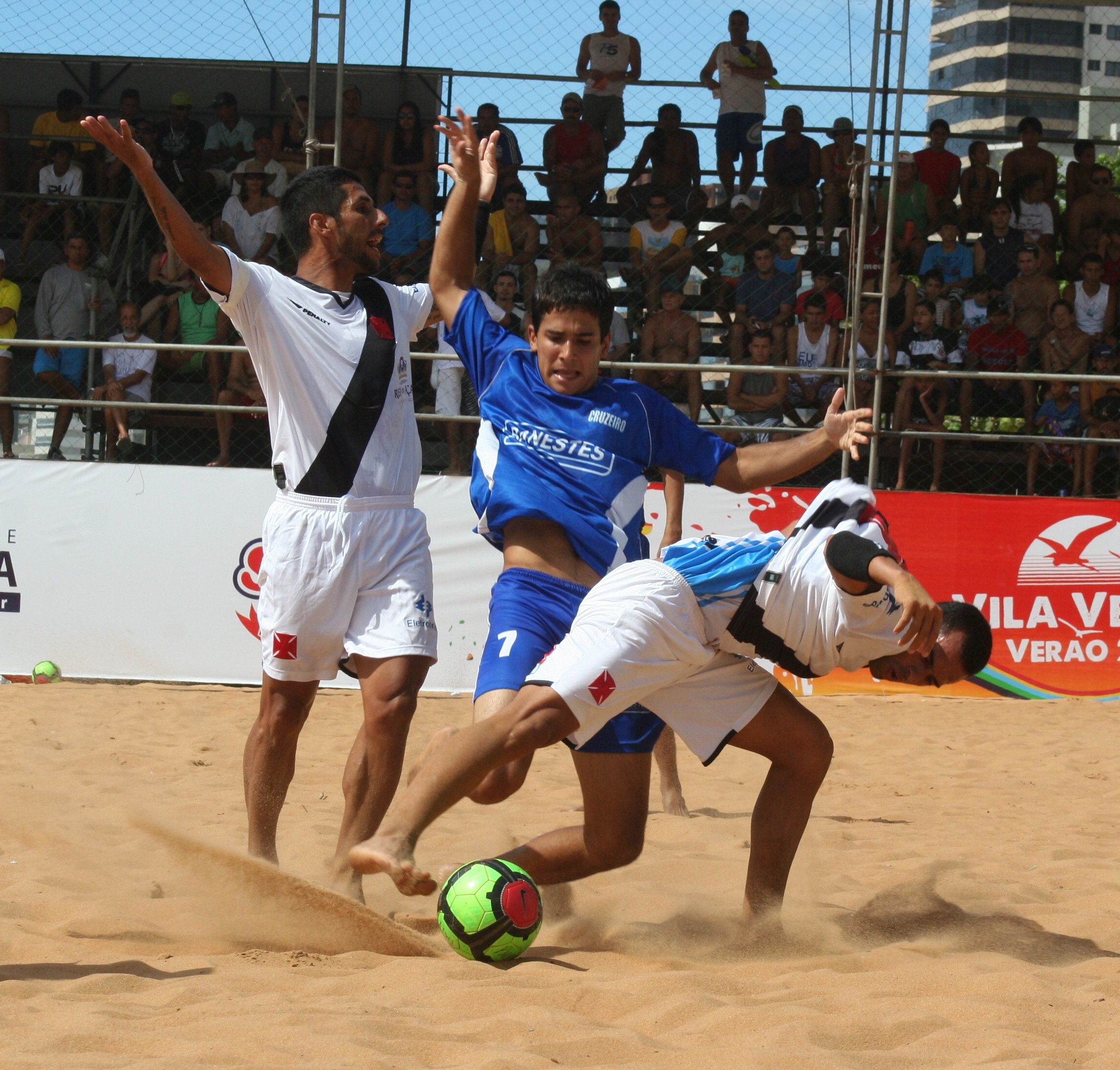 O Cruzeiro derrotou o Vasco da Gama por 3 a 2 nos pênaltis e conquistou o terceiro lugar da Copa Vila Velha de Beach Soccer, encerrada na manhã deste sábado, na Arena da Praia da Costa. O jogo terminou 2 a 2 no tempo normal e 0 a 0 na prorrogação. Marcou para o Cruzeiro Alexandre Pezão (2), um gol no primeiro tempo e outro no segundo.