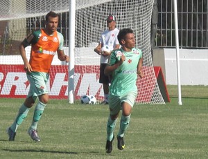 O técnico Ricardo Gomes comandou na tarde desta quarta-feira, em São Januário, um treino para armar o time do Vasco, que estreia na Copa do Brasil, dia 23, contra o Comercial-MS, no Mato Grosso do Sul. A novidade na equipe titular foi a presença do recém-contratado Bernardo. O meia entrou na vaga de Jeferson, que não participou da atividade por causa de uma indisposição estomacal, e, inclusive, fez um gol. O atleta já havia sido elogiado pelo treinador.